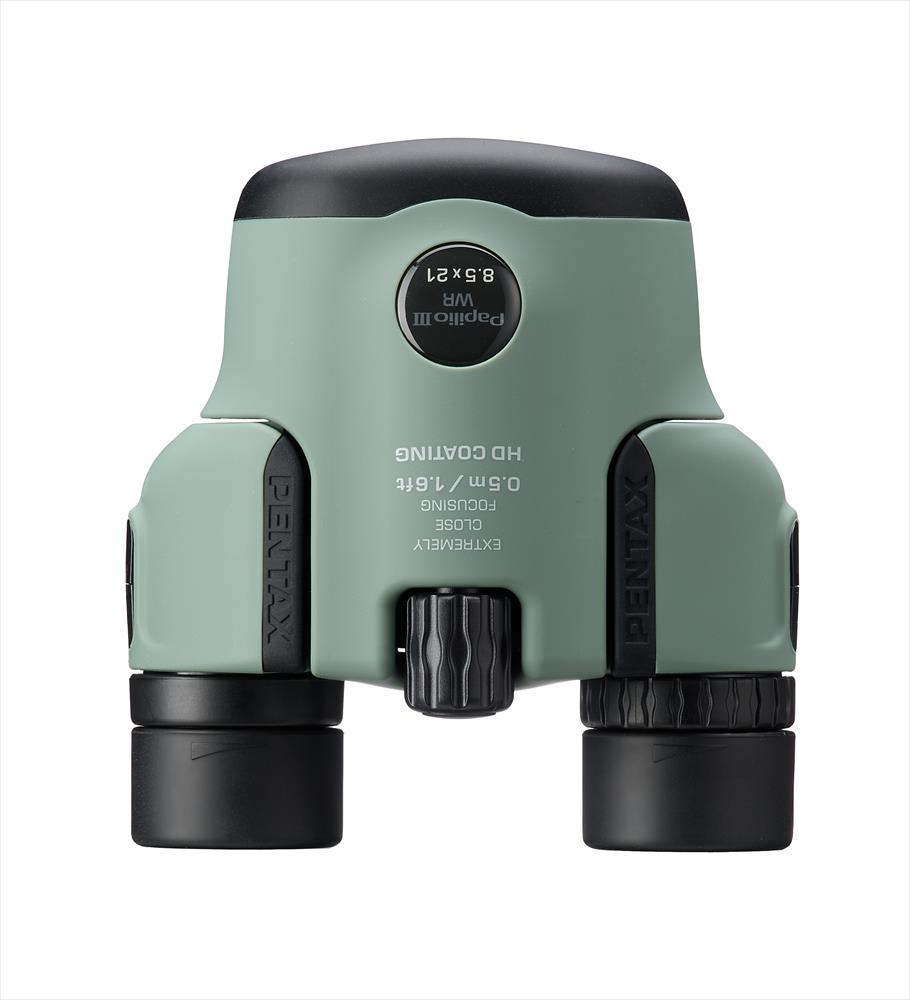 In general, observing an object from a close distance with a pair of binoculars causes a discrepancy in the visual field between the right and left eye. To compensate for this discrepancy, the Papilio III WR incorporates the PENTAX-original convergence correction mechanism, which slides the objective lenses in conjunction with the focusing distance. This unique mechanism lets the user more comfortably observe subjects at close range without suffering eye fatigue. Since the objective lenses return to their original position in long-range observation, this model also performs superbly in normal applications, such as birdwatching, hiking, concerts, and sports viewing.